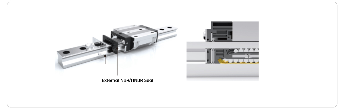 The block of all models are equipped with contact-type "end seals", "bottom seals" and "inner seals". It can effectively prevent foreign particals, dust and wood chips from invading the block, and reduce the overflow of lubricating oil in the block.